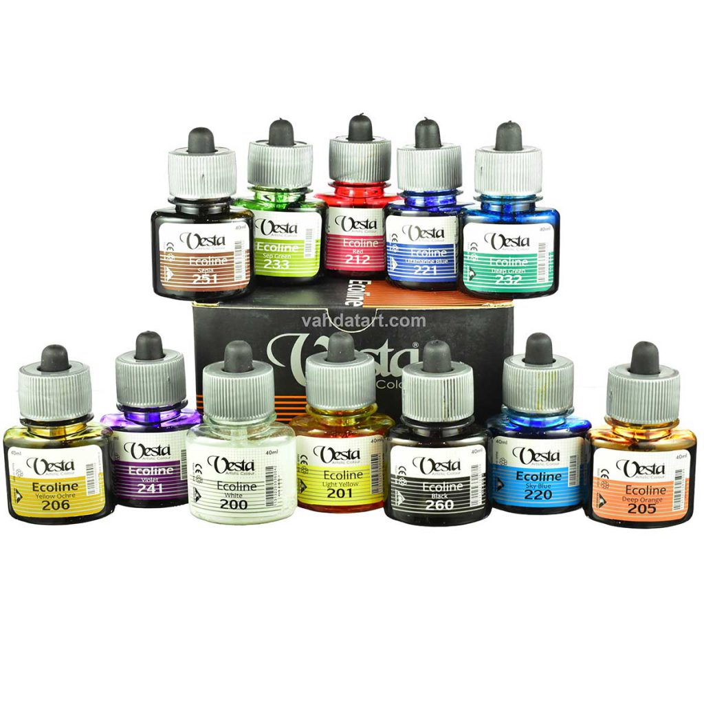 رنگ اکولین شبیه به آبرنگ می باشد ولی برخلاف رنگ های روغنی و یا آبرنگ که نیازمند فرم دهی به شکل قرص یا تیوپ بوده و با افزودن مواد کمکی و پرکننده استفاده می شوند، مستقیمآ از مواد رنگساز تهیه می شود و به صورت محلول به کار می رود و بسته بندی ان دارای قطره چکان است تا