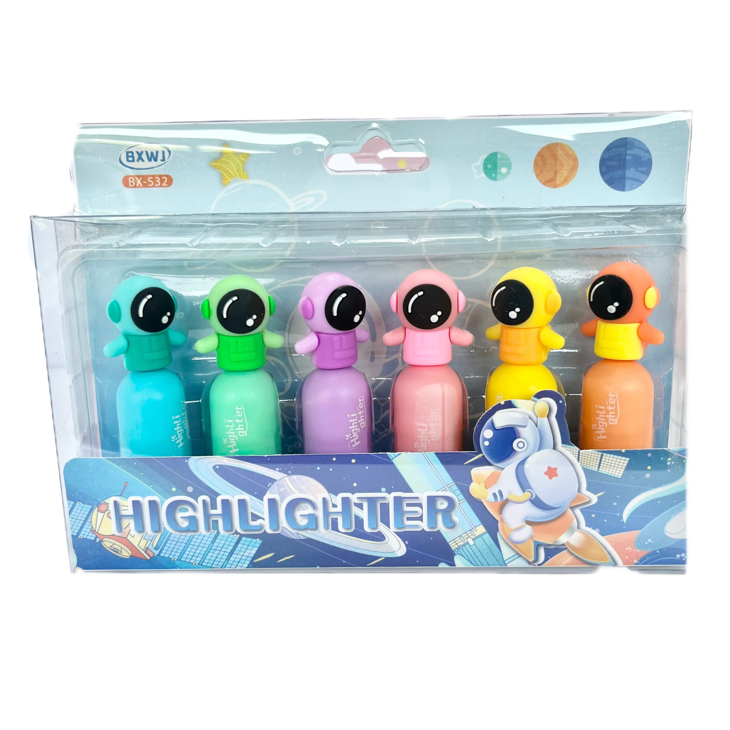 هایلایتر 6تایی فضانورد دارای 6رنگ پاستلی و زیباست و سر ان فضانورد برجسته و جذاب است