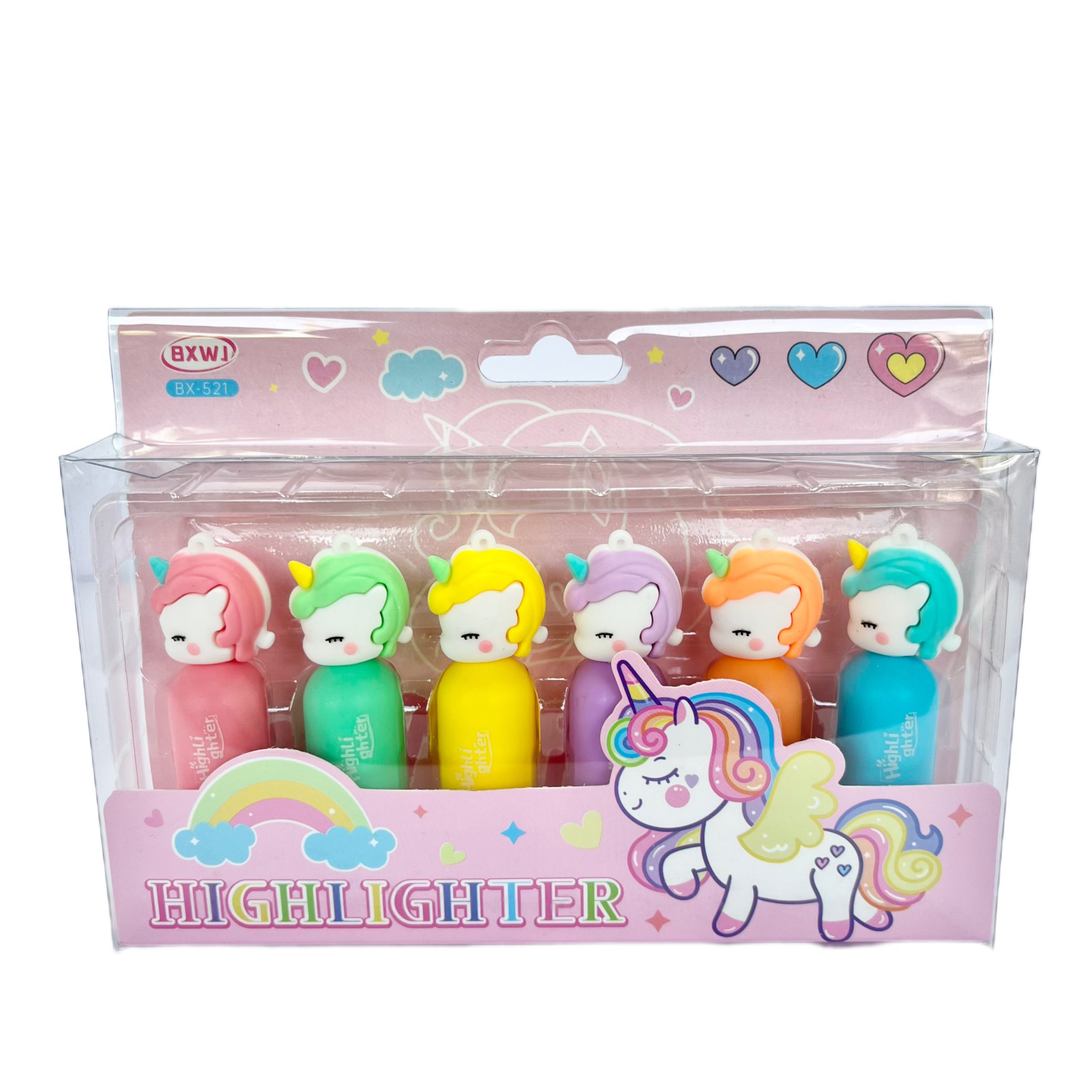 هایلایتر 6عددی یونیکورن محبوب که جوهر ان رنگ پاستلی زیبایی دارد و سر ان یونیکورن برجسته است